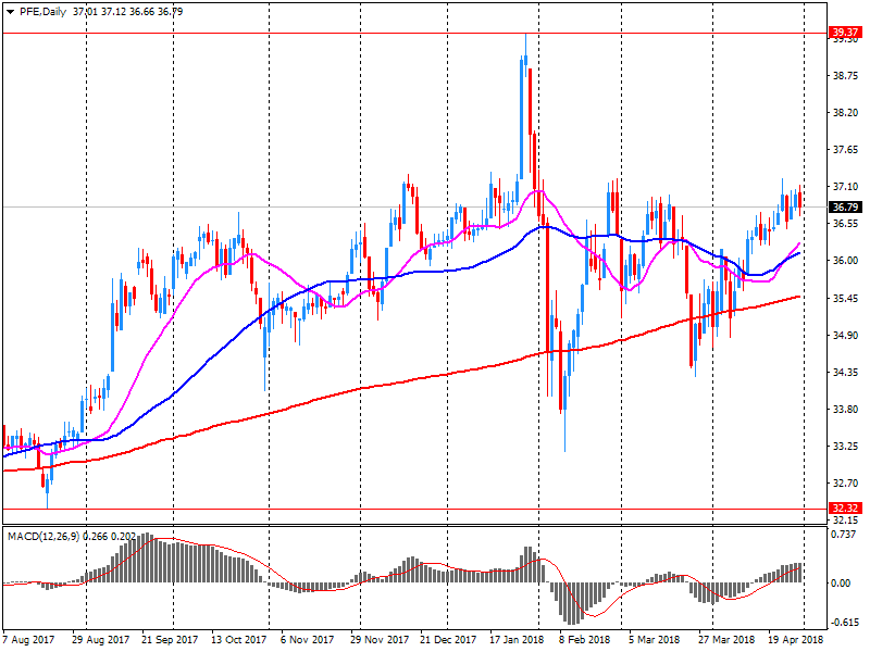 Most of the components of DOW finished trading in the red (22 of 30). The outsider was Pfizer (PFE, -3.56%). The leader of growth was shares of Intel Corporation (INTC, + 3.41%).