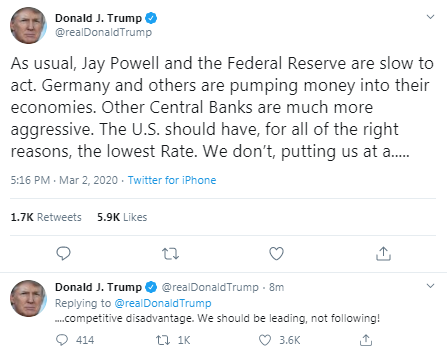 The head of the US Federal reserve Jerome Powell on Friday said that the fed is "closely monitoring" the situation with COVID-19. This has given investors some optimism that the fed will cut interest rates to support economic growth in the country.