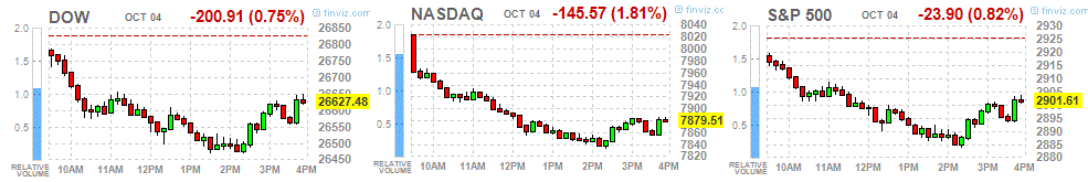 Major US stock indexes have declined significantly, as the growth in US government bond yields to multi-year highs amid steady economic data and optimistic comments by the head of the Fed has raised concerns about accelerating inflation.