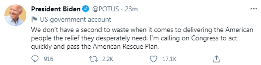 On Sunday, the U.S. Treasury Secretary Janet Yellen endorsed a massive stimulus package, which should include checks to American workers who earn $60,000 per year. She also suggested that the full employment could return next year if Biden's proposed $1.9 trillion coronavirus relief bill was approved by Congress. Otherwise, she added, unemployment would linger for years.