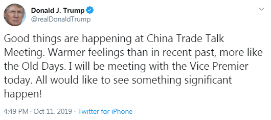 Officials from both countries met in Washington on Thursday to discuss trade, which U.S. President Donald Trump said were “going really well.” Trump is set to meet with Chinese Vice Premier Liu He on Friday.