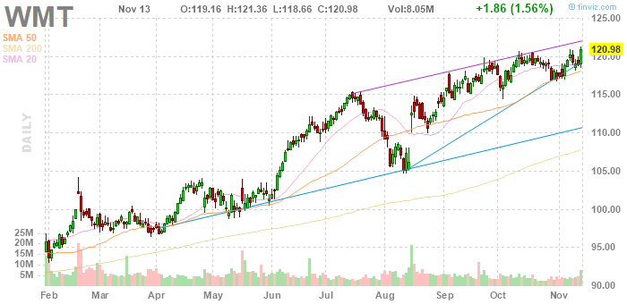 WMT rose to $124.90 (+3.24%) in pre-market trading.