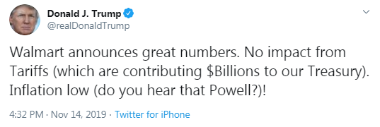 Walmart (WMT) reported Q3 FY 2020 earnings of $1.16 per share (versus $1.08 in Q3 FY 2019), beating analysts’ consensus estimate of $1.09.