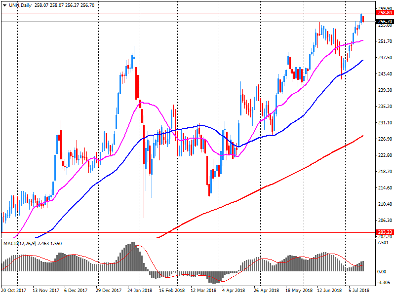 Most components of DOW have finished trading in positive territory (21 out of 30). The leader of growth was the shares of Johnson & Johnson (JNJ, + 3.56%). Outsider were shares UnitedHealth Group Incorporated (UNH, -2.73%).