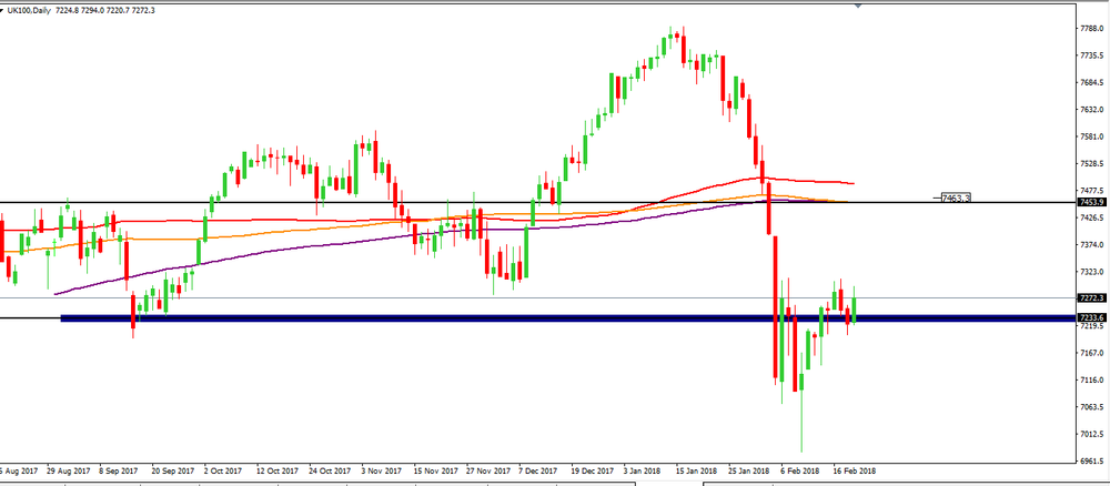 UK 100 a gráfico de 4 horas podemos ver que o preço tem vindo a mostrar indícios de fake breakout da zona de suporte (retângulo azul).