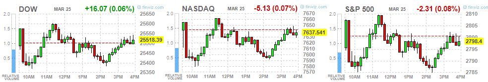 Major US stock indices have predominantly declined, as continuing concerns about the global economy outweighed reports that Special Prosecutor Muller did not find evidence of an agreement between President Trump’s team and Russia in the 2016 US presidential election.