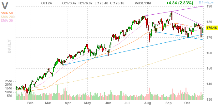 V fell to $176.00 (-0.09%) in pre-market trading.