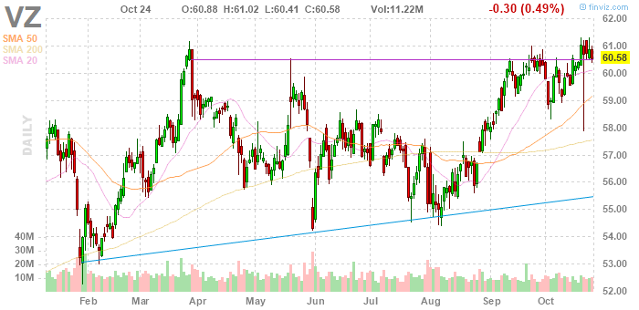 VZ rose to $61.20 (+1.02%) in pre-market trading.