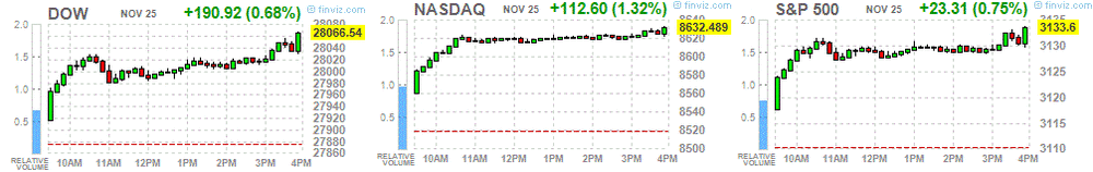 | Dow Jones | 109.33 | 27875.62 | 0.39 |