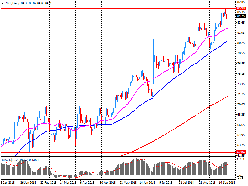 Most of the components of DOW finished trading in the red (22 of 30). Outsider were shares of American Express Company (AXP, -1.69%). The leader of growth was the shares of International Business Machines Corporation (IBM, + 1.81%).