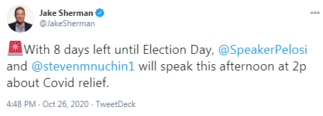 Meanwhile, White house chief of staff Mike Meadows accused Pelosi of constantly " changing the rules of the game." "We continue to make one offer after another, and Nancy Pelosi continues to change the rules of the game," he said.
