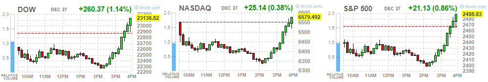 Major US stock markets rose sharply in the last hour of trading, and ended the session in positive territory as tax losses from the sale decreased.