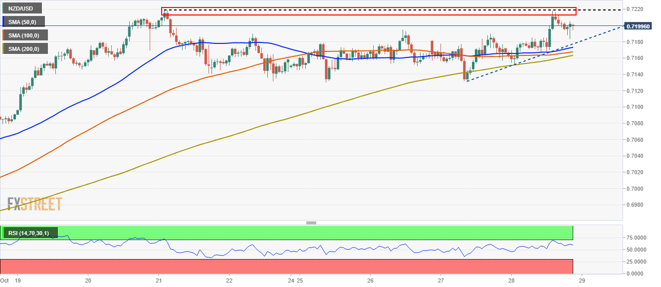 NZD/USD remains on the front-foot, backed by the broad US dollar weakness, despite the recent pullback to 0.7200.