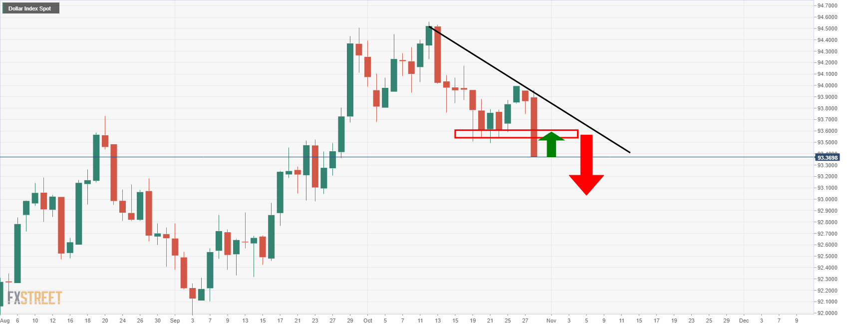However, to resume the uptrend, USD bulls will need a daily close above the October 18 high at 94.17. In that outcome, the 2021 year high at 94.56 would be the only resistance level left before reaching fresh yearly highs.