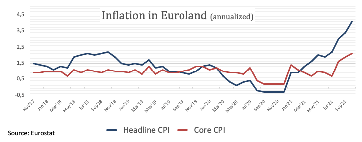 ECB’s assumption that the currently high inflation levels will be temporary has been disputed by Eurozone CPI data earlier on Friday. Consumer inflation accelerated to a 4.1% year-on-year pace in September, more than twice the bank’s target for price stability, putting the ECB in an awkward situation. As a matter of fact, German 10-year Treasury yields rose by 8 basis points following the release of inflation figures, a signal that the market does not accept the bank’s dovish rhetoric.
