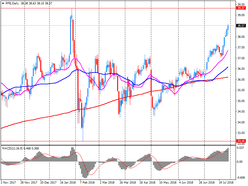 Pfizer (PFE) reported Q2 FY 2018 earnings of $0.81 per share (versus $0.67 in Q2 FY 2017), beating analysts' consensus estimate of $0.74.