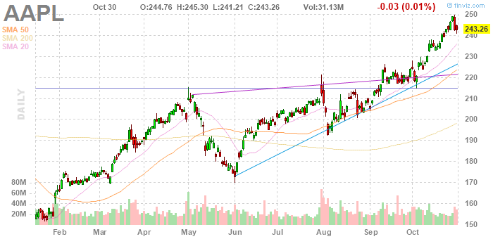 Apple Inc. | AAPL | 247.25 | 3.99(1.64%) | 607594 |