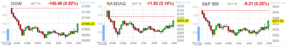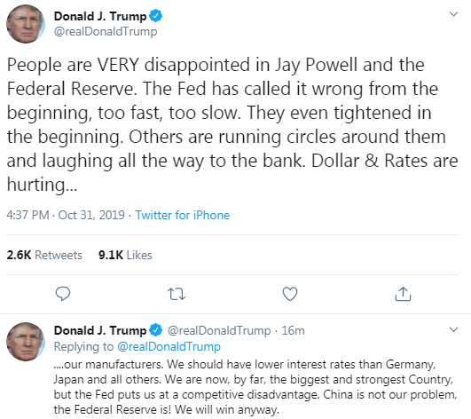 Recent reports have heightened uncertainty about the prospects for a trade deal between the US and China, outweighing solid corporate segment reporting, including giants such as Apple (AAPL) and Facebook (FB), and the Fed’s third rate cut this year on the eve.