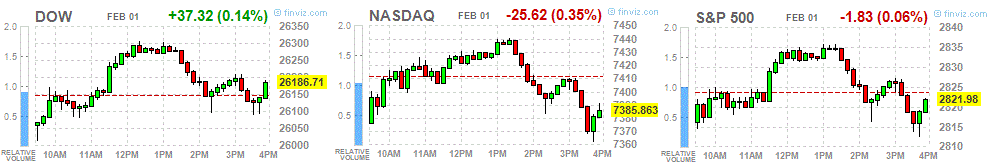 Stocks saw choppy trade Wednesday after the Federal Reserve did nothing to discourage expectations for a March rate rise, but ended the session with modest gains while booking the biggest monthly rise since March 2016. The Dow Jones Industrial Average DJIA, +0.28% rose 72.50 points, or 0.3%, to end at 26,149.39.