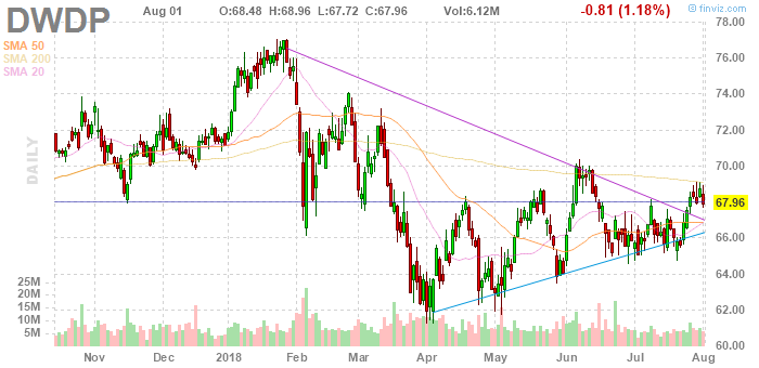DWDP fell to $67.50 (-0.68%) in pre-market trading.