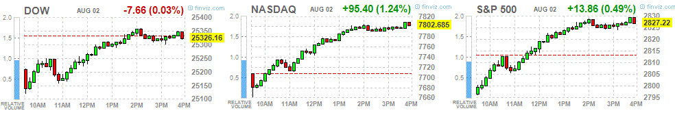 The main US stock indexes ended the session mostly in positive territory, as a significant rise in the price of Apple shares gave an impetus to the technology sector, and helped to compensate for the negative effect of the escalating trade tension between the US and China.