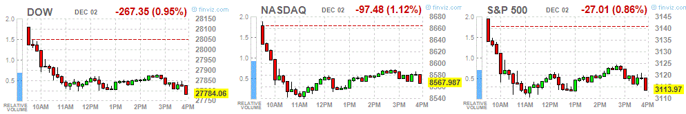 | Dow Jones | -112.59 | 28051.41 | -0.4 |