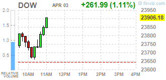 | Dow | 23805.00 | +253.00 | +1.07% |