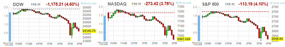 All components of the DOW index finished trading in the red (30 of 30). Outsider were shares of Exxon Mobil Corporation (XOM, -5.41%).