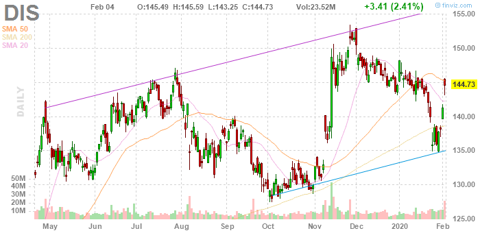 Walt Disney (DIS) reported Q1 FY 2020 earnings of $1.53 per share (versus $1.84 per share in Q1 FY 2019), beating analysts' consensus estimate of $1.44 per share.