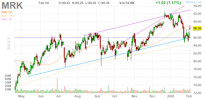 Merck (MRK) reported Q4 FY 2019 earnings of $1.16 per share (versus $1.04 per share in Q4 FY 2018), beating analysts' consensus estimate of $1.15 per share.