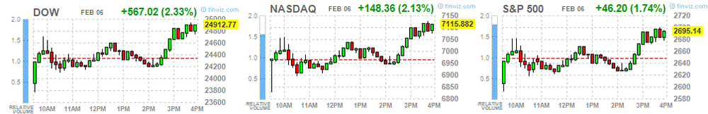Major US stock indices rose strongly on Tuesday, partially recovering from the biggest one-day drop in S & P and Dow in more than 6 years. Support for the indices was exacerbated by increased risk aversion, as well as the fading of fears over inflation and higher yields on government bonds