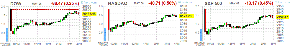 | Dow Jones | 197.16 | 26504.95 | 0.75 |