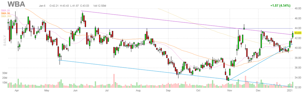 WBA rose to $44.80 (+4.11%) in pre-market trading.