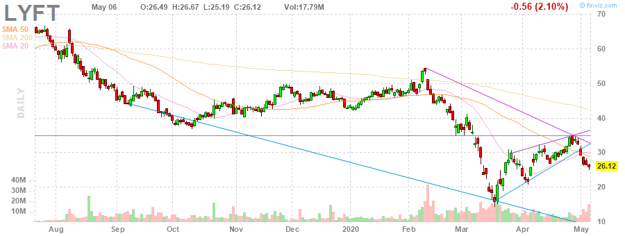 Lyft (LYFT) reported Q1 FY 2020 GAAP loss of $1.31 per share (versus -$9.02 per share in Q1 FY 2019), worse than analysts' consensus estimate of -$0.63 per share.
