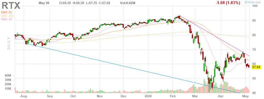 Raytheon Technologies (RTX) reported Q1 FY 2020 earnings of $1.78 per share (versus $1.91 per share in Q1 FY 2019), beating analysts' consensus estimate of $1.05 per share.