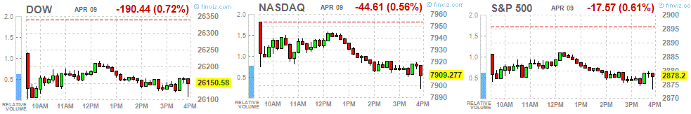 Investors are also continuing to prepare for the quarterly reporting season, which may be the first to show the annual reduction in corporate segment profits from 2016. The season of corporate reporting for the first quarter of 2019 starts on Friday with the publication of the results of the largest banks. According to Refinitiv, analysts predict that the profits of the S & P 500 companies in the first quarter will decline by 2.3% y / y. According to FactSet estimates, investors expect that the profits of the S & P 500 companies in the first quarter will fall by 4.3% y / y.