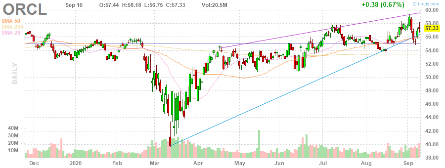 ORCL rose to $59.40 (+3.61%) in pre-market trading.
