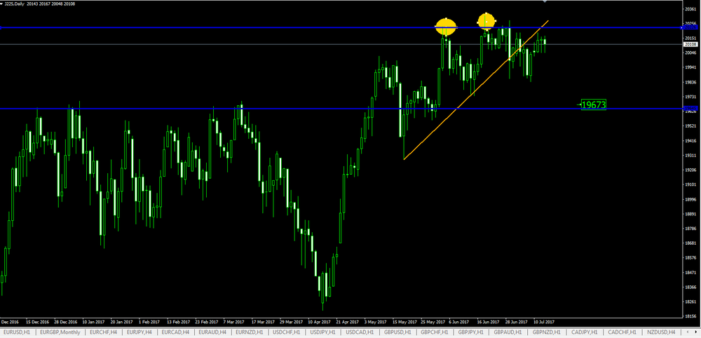 Especial atenção, à relação direta entre o índice JPN225 com todos os pares cambiais ligados ao iene. Quando o índice está em tendência bullish, então xxx/jpy também seguem essa tendência.