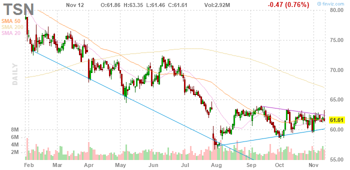 TSN fell to $59.25 (-3.83%) in pre-market trading.