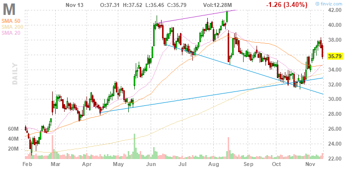 M rose to $36.00 (+0.59%) in pre-market trading.