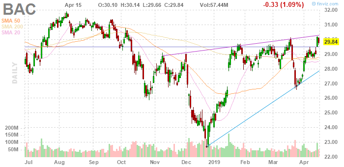 Bank of America (BAC) reported Q1 FY 2019 earnings of $0.70 per share (versus $0.62 in Q1 FY 2018), beating analysts’ consensus of $0.66.