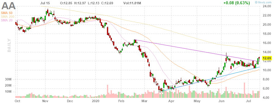 AA rose to $13.20 (+4.02%) in pre-market trading.