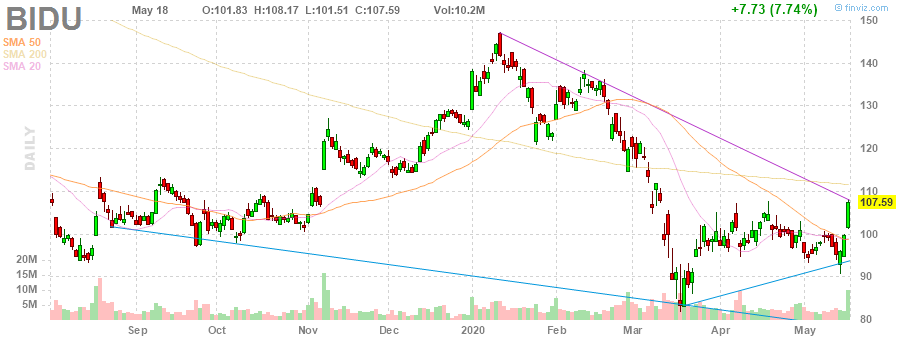 BIDU rose to $115.38 (+7.24%) in pre-market trading.