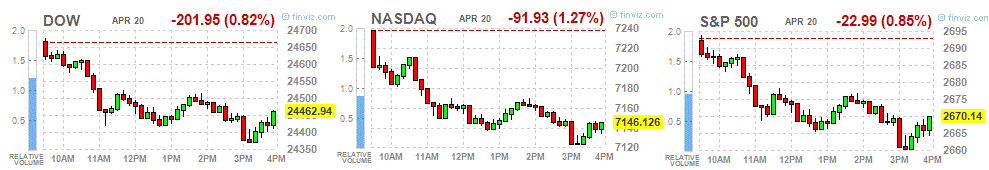 Most components of the DOW index recorded a decline (24 out of 30). Outsider were the shares of Apple Inc. (AAPL, -4.02%). The leader of growth was shares of General Electric Company (GE, + 3.93%) ..