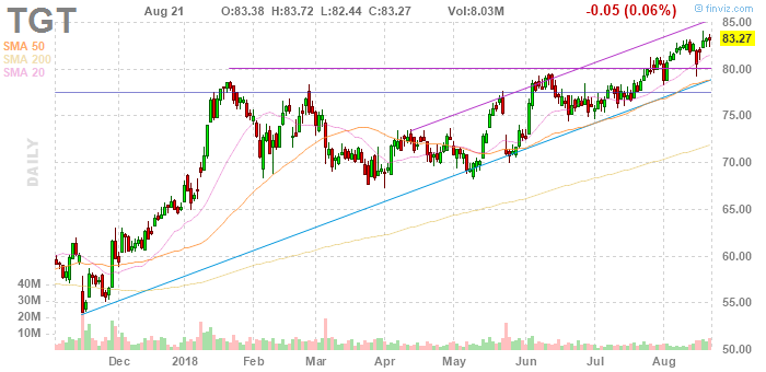 Target (TGT) reported Q2 FY 2018 earnings of $1.47 per share (versus $1.22 in Q2 FY 2017), beating analysts' consensus estimate of $1.40.