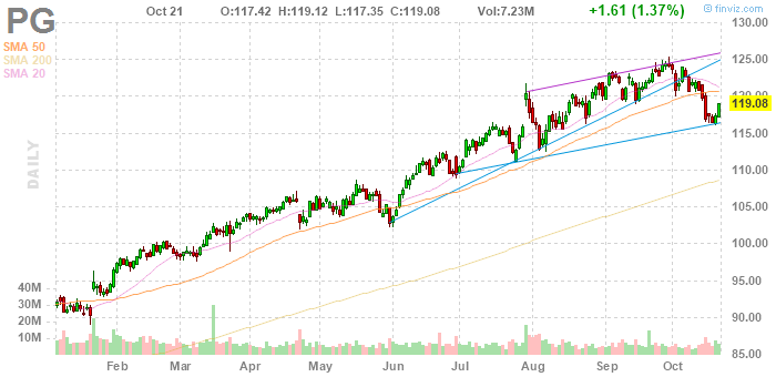 PG rose to $124.59 (+4.63%) in pre-market trading.