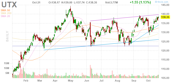 UTX rose to $141.74 (+2.45%) in pre-market trading.