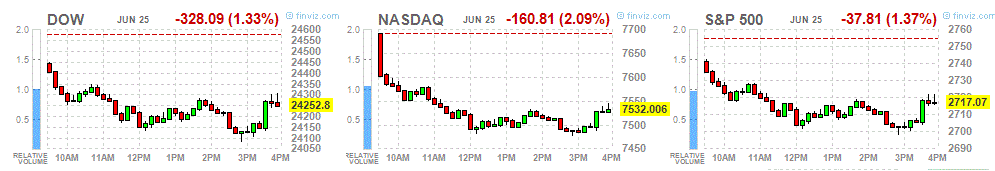 Major US stock indexes have dropped significantly, and the technological and industrial sectors have felt the brunt of escalating trade dispute between the US and other major economies.