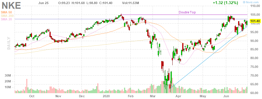Nike | NKE | 97.98 | -3.42(-3.37%) | 148380 |