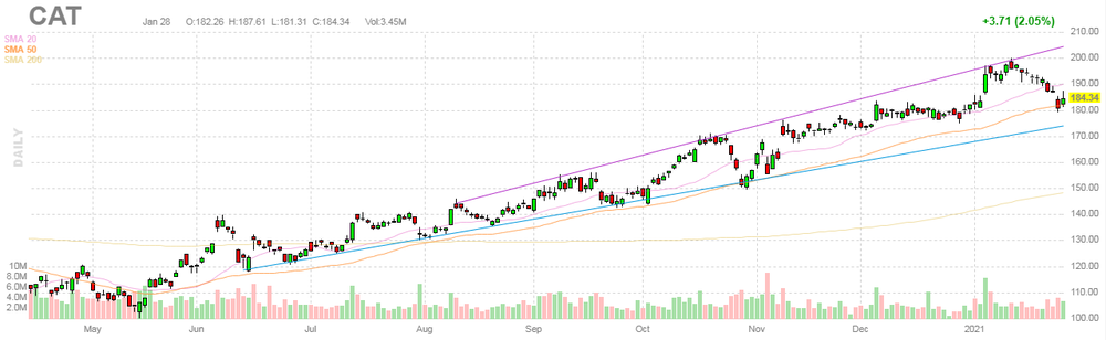 Caterpillar Inc | CAT | 186.2 | 1.86(1.01%) | 55844 |